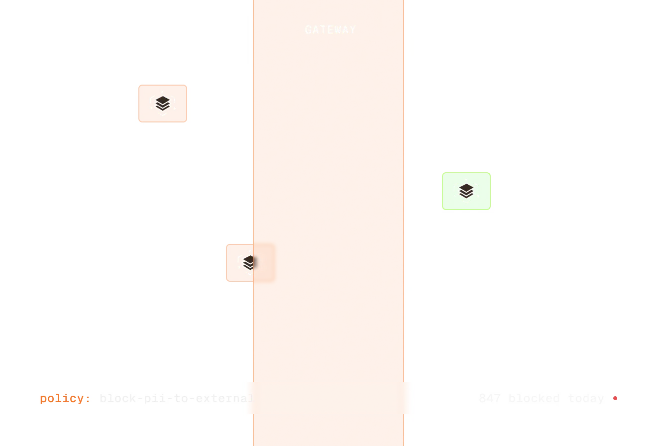 Three capabilities. One platform. Every AI agent and MCP connection — without controlling the LLM or changing how anyone works.